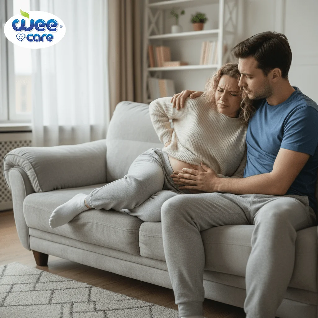 گاهی مادر احساس سفتی موقت در شکم دارد که ممکن است چند ثانیه طول بکشد. این حالت معمولاً بهخاطر انقباضات تمرینی رحم یا همان انقباضات براکستون هیکس است. تا وقتی دردناک یا منظم نباشد، جای نگرانی نیست. نوشیدن آب کافی و استراحت معمولاً باعث آرام شدن این انقباضات میشود.
