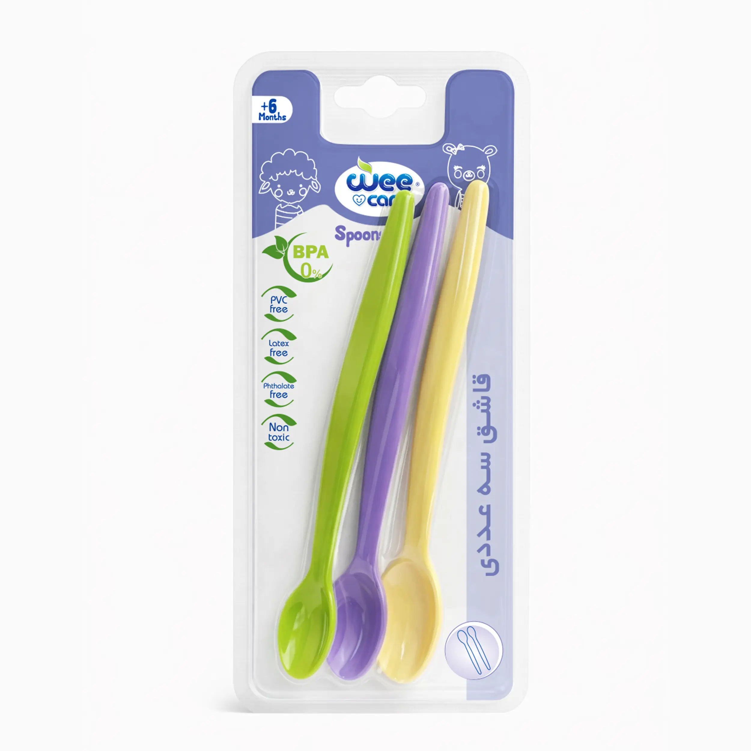 قاشق کودک وی کر مدل 3 عددی 3سایز -(Wee Care-U123) یک انتخاب کاربردی و ایمن برای شروع تغذیه کمکی و رشد تدریجی مهارت غذا خوردن کودک است. این ست شامل سه قاشق در سه سایز مختلف است که متناسب با مراحل مختلف رشد نوزاد طراحی شده‌اند؛ از شروع غذای کمکی تا زمانی که کودک بتواند به‌طور مستقل غذا بخورد.