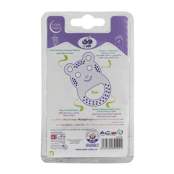دندانگیر سیلیکونی وی کر مدل طرح خرس -(Wee Care-T402) با طراحی کودکانه و جذاب، راهحلی ایمن و سرگرمکننده برای کاهش درد و خارش لثه نوزاد در دوران دنداندرآوردن و پس از آن است.